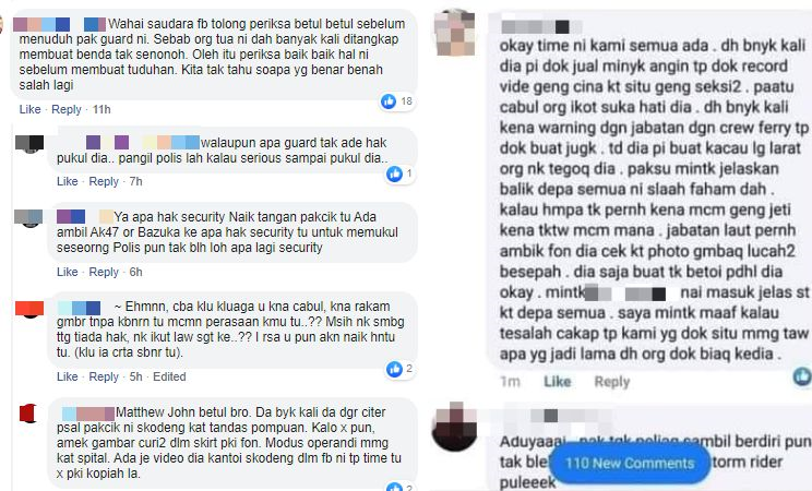“Wahai saudara FB tolong periksa betul-betul sebelum menuduh pak guard ni. Sebab orang tua ni dah banyak kali ditangkap membuat benda tak senonoh,” tulis seorang netizen.