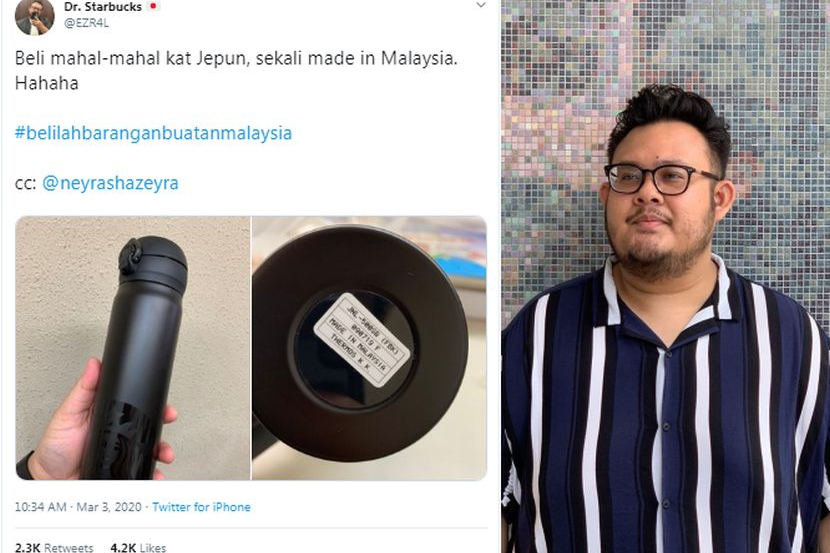 Lain pula yang ditemui seorang pemuda, Ezral Ghazali, 30, apabila dia menunjukkan salah sebuah rangkaian kedai kopi Starbucks di Jepun yang menjual termos buatan Malaysia.
