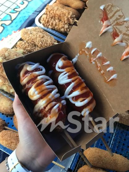 Gerai ibu Nurly menawarkan lima jenis corndog iaitu orginal/sweet, crunchy (cornflakes), potato, mammee dan chicken cheese.