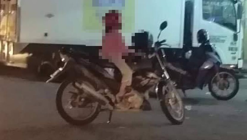 Kanak-kanak perempuan ini dibiarkan bersendirian di atas motosikal oleh bapanya.
