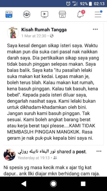 Isu 'suami cuci pinggan' yang pada mulanya dikongsi oleh netizen di Facebook.
