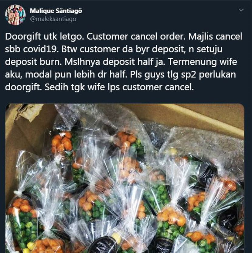 "Kes ni, customer bukan tunda tapi batalkan majlis. Dia pun tak tahu bila akan buat semula, tunggu sampai semua dah settle kata dia.