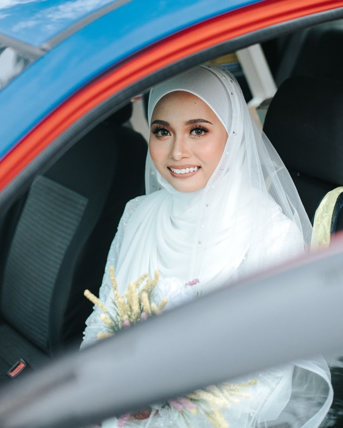 Mazwa menaiki teksi bapanya untuk ke masjid sebelum akad nikah. Foto: Syahmi Azhari Hensem