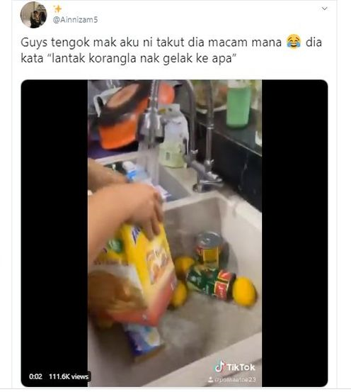 “Guys tengok mak aku ni takut dia macam mana… dia kata ‘lantak koranglah nak gelak ke apa',” demikian kapsyen video yang ditulis gadis itu pada perkongsian tersebut.