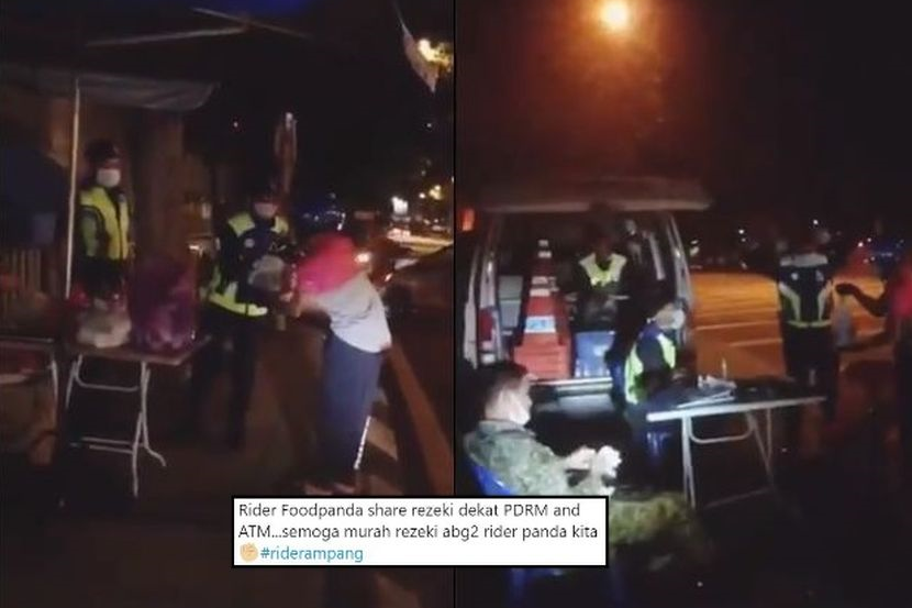 SYABAS! Demikian komen rata-rata netizen apabila sekumpulan rider Foodpanda menghulurkan sumbangan makanan kepada anggota polis dan tentera yang bertugas melakukan sekatan jalan raya.