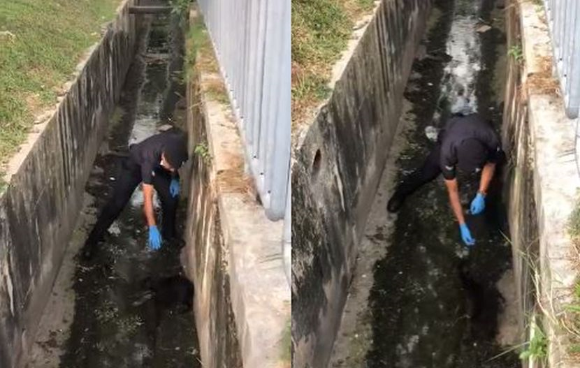 Dikongsi menerusi Facebook Polis Diraja Malaysia (PDRM), ia memaparkan aksi Koperal/Sokongan Mohd Azad menyelamatkan seekor anjing yang terperangkap di dalam longkang.