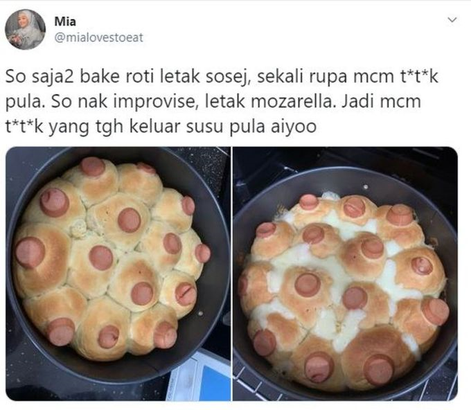 "Saja-saja bakar roti letak sosej kat atas... sekali bila dah siap, rupanya macam payudara.