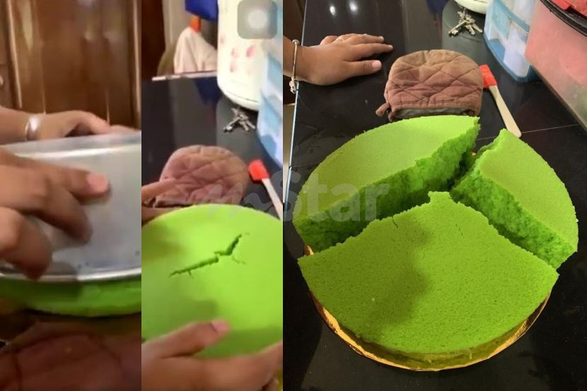 Insiden kek pandan kukus yang terbelah tiga menjadi tular di media sosial. Foto Norfadilah Zainal Abidin