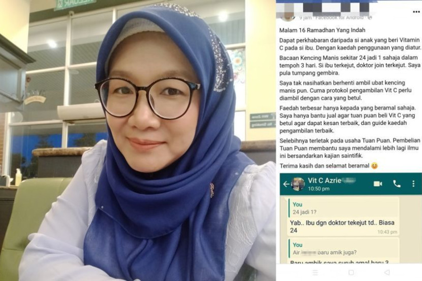 "Pagi tadi saya terbaca posting seorang antivaksin tegar ni. Dia dengan gembira share tentang cerita seorang ibu yang ada masalah kencing manis, selepas menggunakan rejim vitamin C, turun paras gula daripada 24 hingga 1.