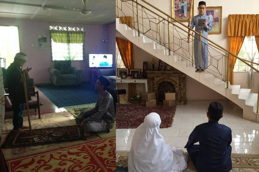 Gaya masing-masing membaca khutbah ketika solat sunat Aidilfitri di rumah. Foto twitter zyetiii/ m_khairin