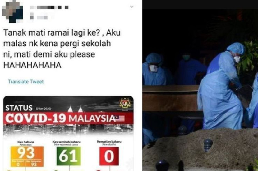 "Tak nak mati ramai lagi ke? Aku malas nak kena pergi sekolah ni. Mati demi aku please hahahaha," tulis seorang pelajar perempuan di Twitter.