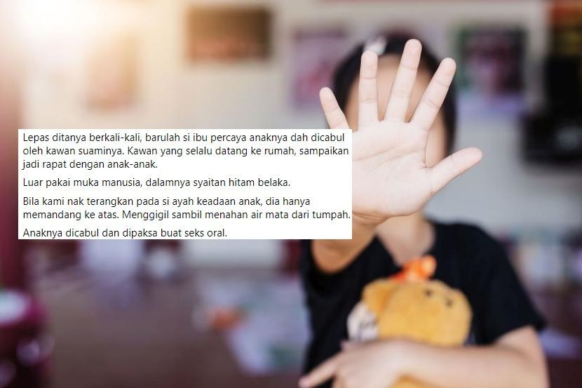 NAFSU serakah sememangnya tidak mengenal mangsanya. Kerap kali kita dihidangkan dengan berita-berita di media tempatan misalnya bapa rogol anak, datuk cabul cucu dan seumpamanya. Lebih dibimbangkan, jenayah seksual ini boleh berlaku di rumah sendiri tanpa disedari oleh ibu bapa mangsa.ARTIKEL BERKAITAN: “Otak pencabul ni busuk” - Pakaian bukan isu, pakar motivasi dedah kisah pelajar jadi mangsa nafsu guru dalam makmal komputerARTIKEL BERKAITAN: Doktor akui bisa tebuan bukan calang-calang , tapi banyak sebenarnya cara elak diri ‘diserang’ - “Patutlah ada peribahasa jangan dijolok sarang tebuan” Dalam kebanyakan kes, pelaku jenayah seksual ini akan mensasarkan mangsanya yang masih kecil dan tidak mengerti apa-apa supaya perbuatan mereka tidak dapat dikesan. Menerusi satu posting di Facebook, seorang doktor pakar pediatrik, Dr Redza Zainol berkongsi satu kisah tragis pesakitnya di mana mangsa, seorang kanak-kanak perempuan yang masih kecil menjadi mangsa cabul rakan bapanya sendiri. Menurut Dr Redza, perlakuan jijik si pelaku terbongkar apabila kanak-kanak perempuan itu mengadu kepada ibunya. "Kenapa Uncle S tonyoh muka kakak pada kemaluan dia? Ibunya terdiam. Tergamam dengan soalan anak perempuannya. "Diulang lagi soalan yang sama pada ibunya. Dia bingung dengan apa yang jadi pada dirinya. Lepas ditanya berkali-kali, barulah si ibu percaya anaknya dah dicabul oleh kawan suaminya. "Kawan yang selalu datang ke rumah, sampaikan jadi rapat dengan anak-anak. Luar pakai muka manusia, dalamnya syaitan hitam belaka," tulisnya pada perkongsian tersebut. Lebih memilukan kata Dr Redza, ayah mangsa kelihatan begitu terkilan dan cuba menahan tangis ketika mana petugas perubatan menerangkan hal sebenar yang dialami anak kecilnya itu. Pelaku gemar mensasarkan kanak-kanak kerana golongan ini masih tidak mengetahui mengenai seks agar perlakuan mereka tidak dapat dikesan. "Bila kami nak terangkan pada si ayah keadaan anak, dia hanya memandang ke atas. Menggigil sambil menahan air mata dari tumpah. "Anaknya dicabul dan dipaksa buat seks oral. 'Saya pergi balai polis. Saya minta polis di sana tembak terus kawan saya. Bagi dia mati'. Itu saja yang mampu dia cakap. Dah terlambat. "Kawan memang kawan. Tapi biarlah sampai di luar pintu rumah saja. Kita bagi orang lain peluk anak kita. Kita bagi orang lain kerap bermalam di rumah kita. Kita bagi kawan selalu datang rumah waktu malam-malam. Padahal rumah ada isteri dan anak perempuan. "Peluang begini yang mereka nantikan. Yang mereka perlukan cuma 15 minit. Itu dah cukup untuk hancurkan keluarga kita," tulis doktor itu lagi. Justeru sebagai peringatan dan nasihat kepada ibu bapa yang lain, doktor ini memberi beberapa panduan untuk diikuti sekiranya kejadian yang sama berlaku terhadap keluarga mereka. Ibu bapa memainkan peranan yang penting dalam memastikan anak-anak mereka tak terdedah dengan gangguan seksual. "Pertama, pastikan diri sendiri dan anak dalam keadaan selamat. Pelaku tu sanggup buat apa saja untuk tutup kesalahan sendiri. "Kedua, buat laporan polis. Ini dokumen paling penting. Ketiga, bawa salinan laporan polis ke hospital. Anak akan diperiksa oleh doktor kanak-kanak dan doktor sakit puan. Dengan salinan laporan polis, barulah doktor sakit puan boleh buat pemeriksaan teliti pada bahagian kemaluan anak. "Pihak polis pula dengan segera akan memberkas si pelaku. Ini penting supaya pelaku tak datang untuk mengganggu keluarga mangsa," tulisnya. Menurut Dr Redza, anak akan dirujuk pada doktor psikiatri untuk penilaian tanda-tanda kemurungan, tanda stress, tanda trauma atau paling serius sehingga timbul rasa untuk membunuh diri. "Jika ada anak perempuan yang lain, bawa semuanya ke hospital. Ada kemungkinan, semua pun sudah dicabul," tulisnya lagi sambil meminta agar postingnya dikongsikan supaya para ibu bapa peka dan mengambil berat tentang keselamatan anak masing-masing. Sehingga kini, perkongsian tersebut meraih sehingga 1,000 shares di Facebook. Nak macam-macam info? Join grup Telegram mStar!