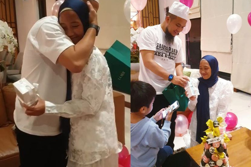 Selain ruangan kediaman yang dihias indah dengan belon dan riben, anak sulungnya turut kelihatan gembira memeluk Ebit dalam video itu.