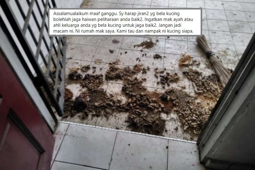 Seorang pelayar Facebook meluahkan rasa kecewa dengan sikap jiran ibunya yang suka melepaskan kucing sehingga haiwan peliharaan mereka 'membuang' merata-rata. Foto: Acik Eim