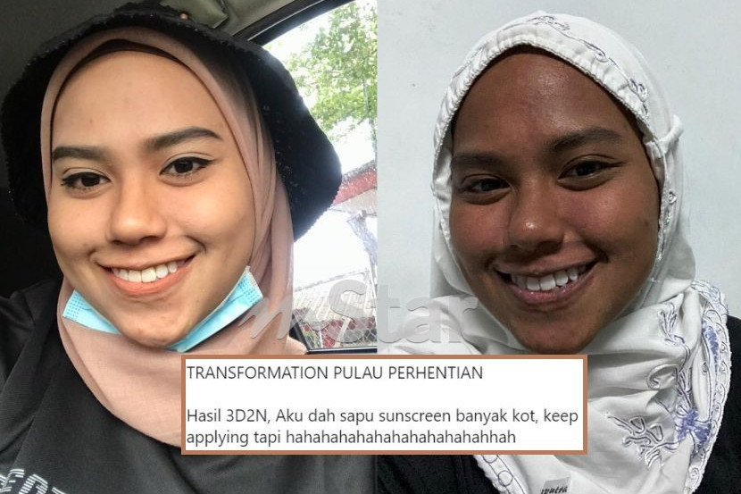 Perkongsian Alwani Ismail yang turut memuatnaik gambar perubahan kulit wajahnya dengan kapsyen 'Transformation Pulau Perhentian' menjadi tular di Twitter.