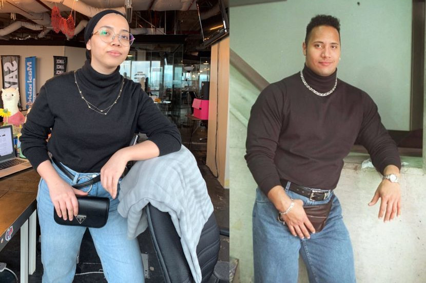 Tanpa disengajakan, ia kelihatan hampir sama dengan pakaian yang digayakan oleh The Rock suatu masa dahulu.