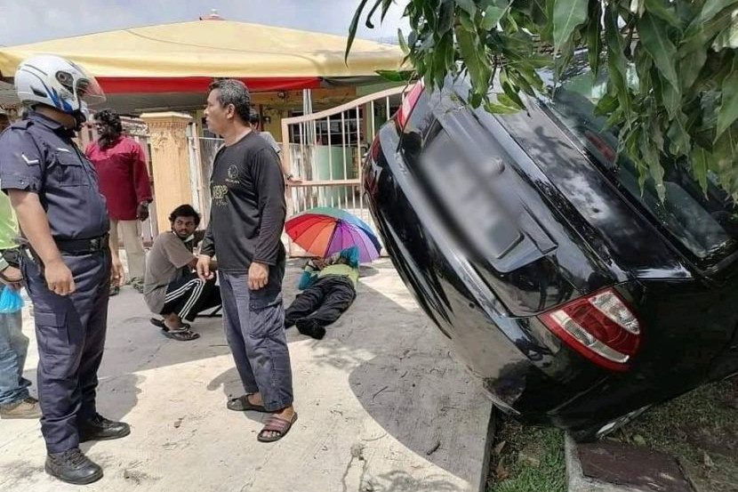 Bapa kepada Nurul Jannah (bawah payung) mengalami kecederaan parah selepas dirempuh sebuah kereta ketika sedang berehat di bawah pokok.