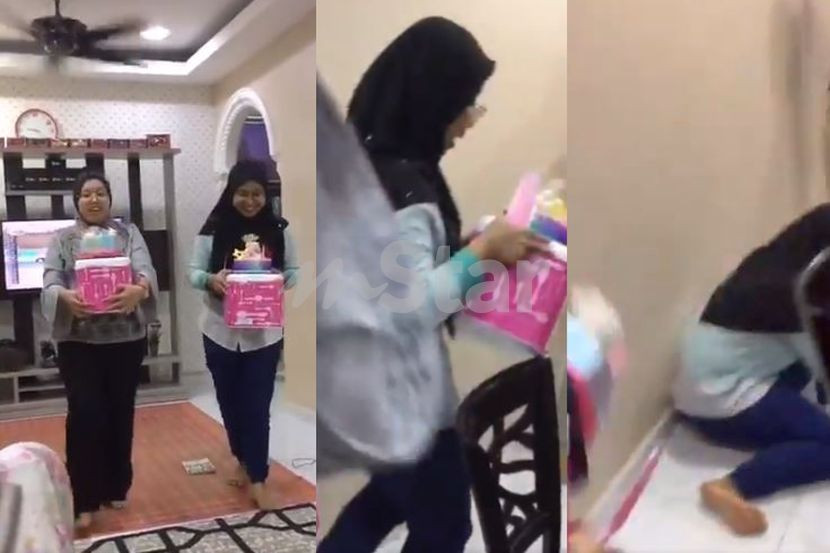 Begitulah gambaran kisah dalam sebuah video yang tular menunjukkan dua wanita masing-masing membawa sebiji kek ais krim diletakkan di atas kotak.