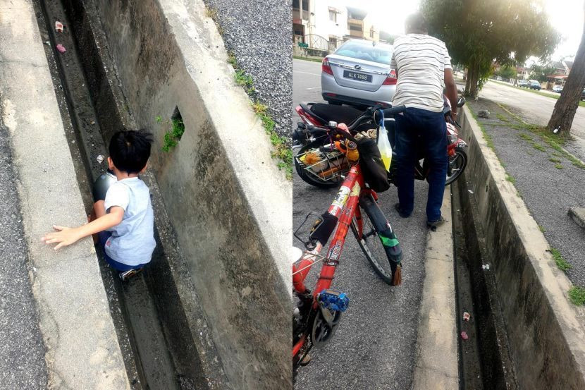 "Motor tu jatuh tepi longkang besar. Terpandangkan di tepi longkang tu ada tangan budak kecil. Tengok-tengok Fayyad dalam longkang tu!" katanya.