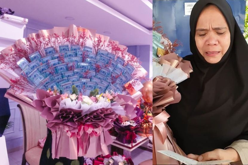 KASIHNYA ibu membawa ke syurga, tidak hairanlah seorang anak sanggup melakukan apa sahaja demi menggembirakan satu-satunya insan tersayang ini. Kejutan berupa bunga duit yang kini menjadi trend nampaknya menjadi, namun air mata si ibu dapat dilihat mengalir menerusi satu klip video yang merakamkan detik menyentuh hati itu. Erat memegang bunga duit sebagai penyeri hadiah hari ulang tahun, pemberian daripada si anak itu ternyata mengundang sebak ibunya. ARTIKEL BERKAITAN: "Saya ingatkan bunga duit tu sikit-sikit je" - Tangguh sambut birthday, diam-diam suami buat kejutan RM29,000 sampai isteri tak larat angkat jambangan! ARTIKEL BERKAITAN: Suami cuak surprise birthday tak menjadi, isteri dapat bunga duit siap 'hentak kaki' kata tak cukup - "Bukan satu, tapi dua kejutan ada view KLCC, Menara KL" Nurhazreen Md Ris berkata, dia tidak menyangka kejutan tersebut menyentuh emosi ibunya yang menyambut ulang tahun ke-54 pada 21 November lalu. Jambangan bunga duit bernilai RM3,000. Ini kerana, dia tidak berada di tempat kejadian iaitu di warung milik ibunya di Tawau, Sabah, bagi memastikan rancangannya untuk membuat kejutan itu berjalan lancar seperti dirancang. "Saya pun nangis bila tengok video yang dibuat oleh pihak yang menghantar bunga duit itu. Saya sebak tengok mak memangis. "Tapi pada masa sama, rasa gembira juga sebab berjaya suprise kan mak," kata wanita berusia 27 tahun itu kepada mStar. Berkongsi kisah mengenai kejutan itu, Nurhazreen yang juga berasal dari Tawau berkata, bunga duit itu merupakan jambangan yang menghimpunkan wang kertas berjumlah RM3,000. Ibu Nurhazreen (kiri) dan bapanya di warung. Jelasnya, duit tersebut merupakan hasil tabungannya sejak Januari 2019 kerana dia memang berniat untuk membuat kejutan berupa bunga duit pada hari ulang tahun ibunya. "Tapi duit dalam tabung hanya ada RM2,100. Saya cakap dalam hati kalau Allah izinkan saya bagi RM3,000, insyaAllah hajat itu akan ditunaikan. "Saya dapat kumpul duit gaji saya lagi bagi mencukupkan jumlah RM3,000. Akhirnya dapat betul-betuk bagi mak RM3,000," katanya. Ucapan hari jadi buat ibu tersayang. Mengulas lanjut, katanya, duit itu adalah hasil dia bekerja di warung yang diusahakan oleh ibunya sejak 10 tahun lalu. "Saya belajar setakat SPM (Sijil Pelajaran Malaysia) saja. Sekarang ni memang saya kerja dengan mak di warung, duit bunga tu gaji saya bekerja di warung emak," ujar Nurhazreen. Setakat ni yang saya mampu bagi mak. InsyaAllah tahun depan panjang umur, ada rezeki lebih mahu juga bagi lebih banyak NURHAZREEN MD RIS Menurut anak kedua daripada enam beradik itu, tiada simbolik di sebalik angka bagi nilai bunga duit yang dijadikan sebagai kejutan hari jadi itu. "Tak ada simbolik apa-apa pun. Setakat ni yang saya mampu bagi mak. InsyaAllah tahun depan panjang umur, ada rezeki lebih mahu juga bagi lebih banyak. "Walaupun sungguh jasa seorang ibu tak dapat dibalas dengan duit, tapi saya saja mahu menggembirakan mak di hari lahir dia," tambahnya. Nurhazreen (kiri) mahu menggembirakan ibunya di hari jadi. Nurhazreen bagaimanapun menjelaskan bahawa dia memang bekerja di warung pada hari kejutan dibuat, tetapi memberi alasan kepada ibunya untuk pulang awal kerana urusan lain. "Memang tak sangka mak menangis dapat kejutan tu. Selamat hari lahir mak, terima kasih mak atas segala penat lelah dan pengorbanan mak, mengandungkan, melahirkan, membesarkan dan mendidik saya. "Sungguh tidak dapat saya balas jasa dan kasih sayang mak. Setitis peluh, sehela nafas mak, setitis darah mak ketika melahirkan saya itu pun tak dapat saya balas. "Moga berbahagia mak sentiasa dan moga Allah merahmati mak selama-lamanya hingga ke syurga. Sayang mak sangat-sangat. Ya Allah pelihara fitrah kasih sayang ini. Amin," katanya. Nak macam-macam info? Join grup Telegram mStar! View this post on Instagram A post shared by mStar (@mstaronlineofficial)
