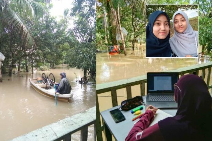 Mariana dan Mariani menghadapi cabaran untuk menyertai kelas dalam talian gara-gara banjir yang melanda.