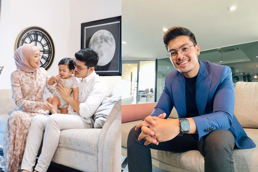 (kanan) Hafiz disahkan positif Covid-19 pada hari pertama PKP 2.0. (kiri) Hafiz bersama isteri Syafiqah Aina dan anak perempuan, Raisya Arisa.