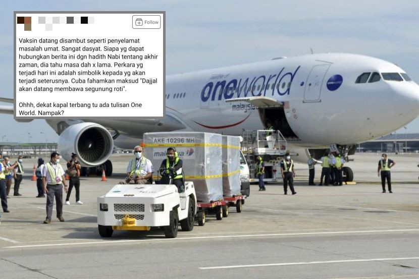 LEBIH setahun dunia diserang wabak Covid-19, sudah pastinya penemuan dan penghasilan vaksin bagi virus maut itu sesuatu yang ditunggu-tunggu ramai. Selepas banyak negara sudah memulakan program imunisasi Covid-19 sejak beberapa bulan lalu, kini tiba pula giliran Malaysia. Kumpulan pertama vaksin Covid-19 Pfizer-BioNTech tiba di Lapangan Terbang Antarabangsa Kuala Lumpur (KLIA) di Sepang, Selangor, pada pagi Ahad dengan membawa 312,390 dos vaksin menggunakan pesawat Airbus 330-300. ARTIKEL BERKAITAN: Akhirnya kumpulan pertama vaksin Covid-19 tiba di Malaysia pagi ini ARTIKEL BERKAITAN: Diawalkan 2 hari, Program Imunisasi Covid-19 Kebangsaan bermula 24 Februari - Khairy Sudah semestinya ketibaan vaksin ini disambut baik oleh rakyat negara ini yang sudah sekian lama menantikan 'penawar' virus berkenaan. Dalam pada ramai yang teruja dan gembira, bagaimanapun ada segelintir pihak bergelar 'antivaksin' yang mengambil kesempatan untuk terus menyebarkan teori tidak berasas dengan mengaitkan vaksin Covid-19 dengan Dajal. "Vaksin datang disambut seperti penyelamat masalah umat. Sangat dahsyat. Siapa yang dapat hubungkan berita ini dengan hadis nabi tentang akhir zaman, dia tahu masa dah tak lama. Cuba fahamkan maksud 'Dajal akan datang membawa segunung roti'. Oh, dekat kapal terbang tu ada tulisan One World. Nampak?" demikian tulis seorang pelayar di Facebook. Khairy menyangkal teori tidak berasas seorang pelayar Facebook. Pelayar berkenaan membuat perkongsian di laman sosial itu sebagai mengulas satu hantaran yang dimuat naik oleh Kementerian Kesihatan Malaysia (KKM) mengenai juruterbang yang bertanggungjawab menerbangkan pesawat yang membawa dos vaksin Covid-19. Perkongian tersebut mendapat perhatian Menteri Sains, Teknologi dan Inovasi, Khairy Jamaluddin Abu Bakar yang lantas menyangkal teori pelayar berkenaan. "Vaksin bukan Dajal dan One World adalah nama airline alliance atau rangkaian syarikat-syarikat penerbangan," tulis Khairy pada ciapan di Twitter. Dalam masa yang sama, Khairy turut menyeru rakyat agar yakin dengan kajian sains di samping menggunakan media sosial untuk menyebarkan fakta. "Mungkin kita tertawakan golongan antivax di sini tetapi mereka lantang di platform medsos (media sosial) seperti FB dan WhatsApp. "Saya harap rakyat yang yakin dengan sains turut membantu menyebarkan maklumat sahih bersama kerajaan. Terutamanya dalam group WhatsApp keluarga dan taman perumahan," ujarnya lagi. Antara respon netizen yang menyokong menteri berkenaan. Rata-rata netizen turut menyokong langkah menteri berkenaan yang memberikan penerangan bagi mengelakkan rakyat terus terpengaruh dengan 'dakyah' golongan antivaksin. "Saya dah mula melawan mereka di FB, Twitter dan WhatsApp dah YB sebab kebodohan antivaksin belum ada vaksin dan penawar lagi melainkan perlu diberi pelajaran sama ada secara berhemah atau secara sinis dan berlawak," komen seorang netizen. "Keluarga saya semua sedang menunggu untuk dapatkan vaksinasi. Kami akan bantu menerangkan dari segi sains dan tanggungjawab sosial mengenai vaksinasi. InsyaAllah," komen seorang pelayar lain. Nak macam-macam info? Join grup Telegram mStar!