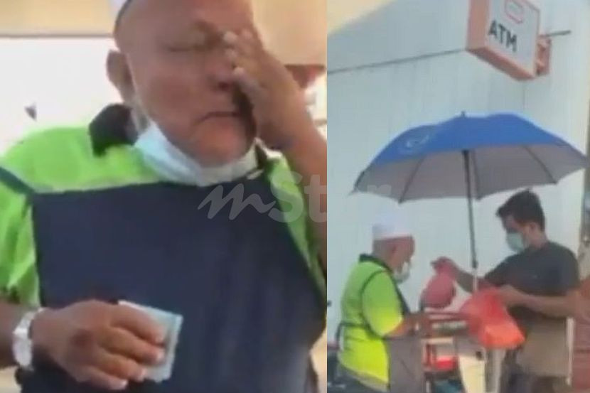 (kiri) Pakcik Zaini terharu kerana buah potongnya habis terjual. (kanan) Suami Alina memborong buah potong untuk disedekahkan kepada orang ramai.
