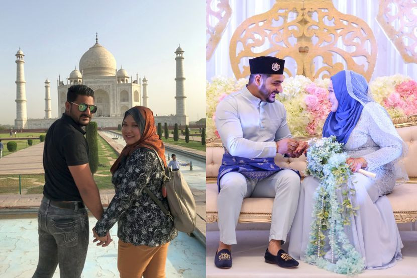 Foto kanan Aini berkahwin dengan jejaka Kashmir pada 2020, foto kiri ketika mereka berdua berkunjung ke India.