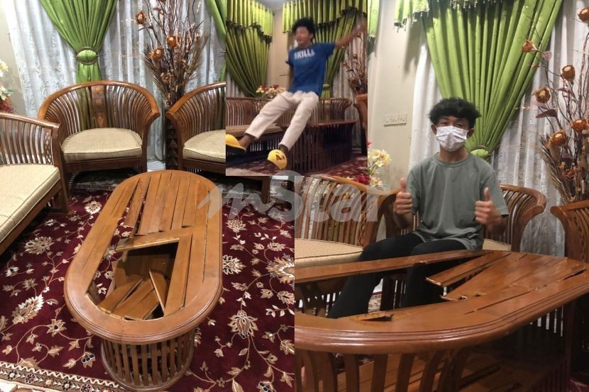 Gara-gara terlalu asyik membuat video TikTok, meja kayu yang dijadikan sebagai props content patah.