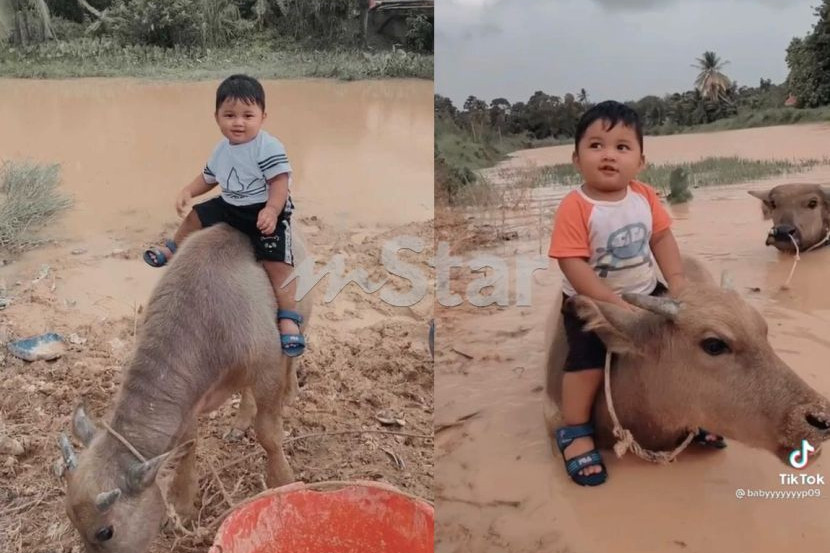 Baru-baru ini tular satu video di aplikasi TikTok memaparkan gelagat si cilik yang kelihatan begitu asyik menunggang dan bermain dengan kerbau peliharaan keluarganya.