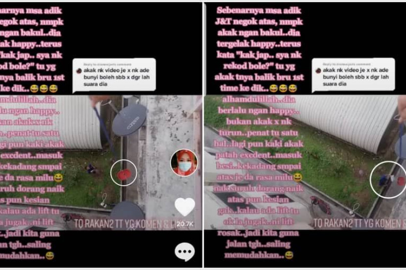 "Tapi kadang kala ada juga runner yang tak baca mesej jadi mereka naik terus sampai atas, kesian sangat jadi akak pesan lain kali tak perlu naik atas call je akak akan turunkan bakul.