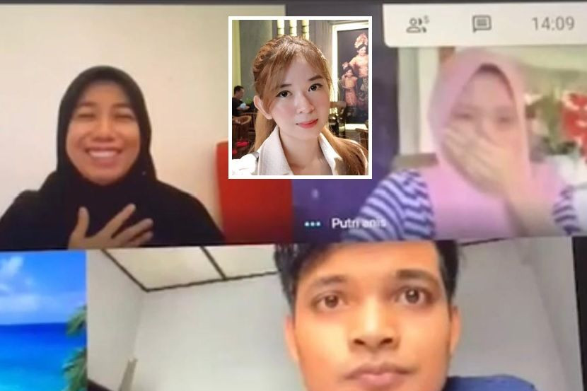 Lebih melucukan, suara nyaring gadis berkenaan jelas kedengaran sehingga mengejutkan pensyarah dan rakan-rakannya yang lain gara-gara dia terlupa untuk 'mematikan' mikrofon pada laptopnya.