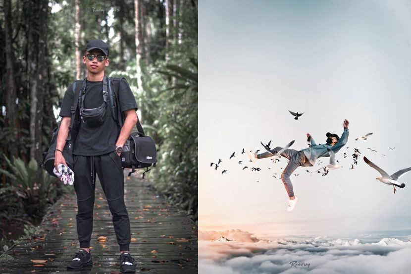 Foto kiri, Syed gemar dengan aktiviti fotografi, foto kanan foto versi suntingan menunjukkan Syed dikelilingi burung berterbangan.