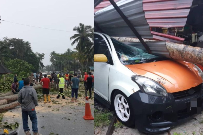 Menurut Solleh, dia sekeluarga turut terkejut apabila tiga pokok kelapa tumbang di sekitar rumah sehingga menghempap kereta Perodua Myvi milik abangnya.