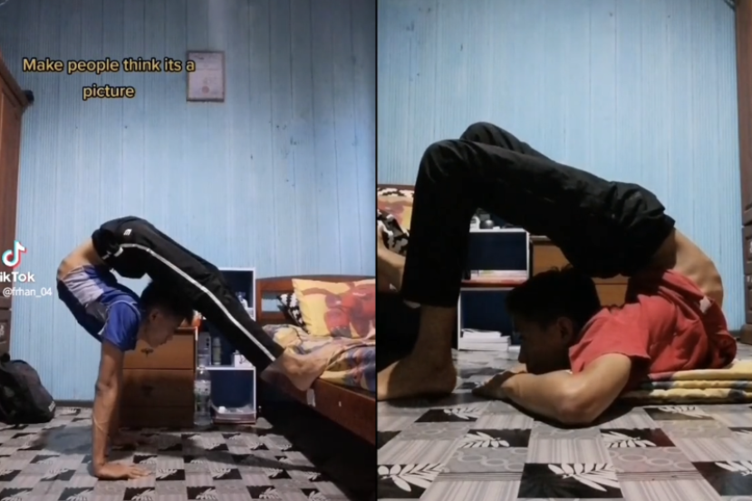 Menerusi rakaman yang dimuat naik oleh remaja berkenaan, dia dilihat melalukan aksi melenturkan badan dan cuba menahan diri untuk tidak bergerak bagi menyahut cabaran menampakkan rakaman video tersebut seperti sekeping gambar.