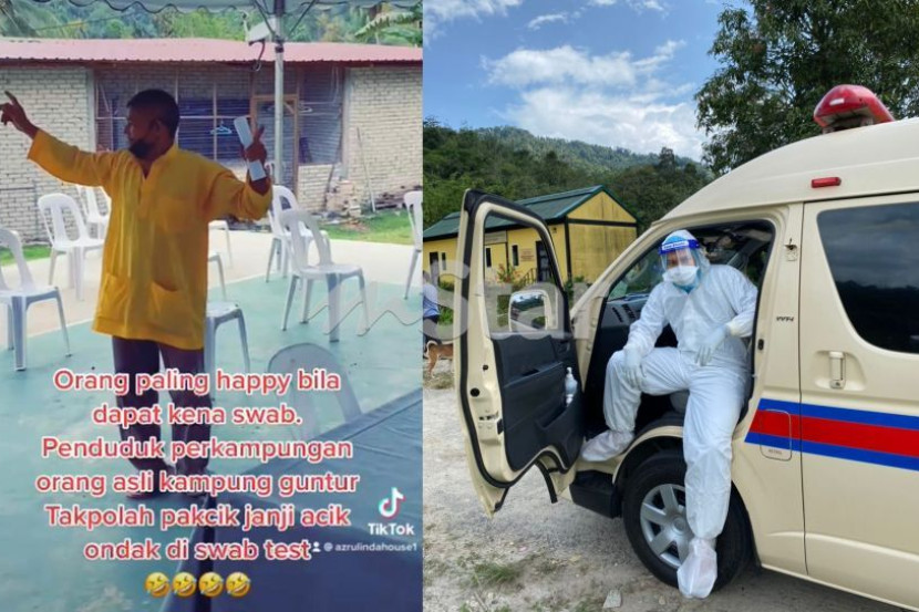 Menerusi perkongsian di TikTok, seorang petugas kesihatan memuat naik video satu insiden lucu memaparkan gelagat seorang penduduk kampung Orang Asli yang begitu gembira sehingga menari-nari sewaktu hadir untuk melakukan ujian saringan.