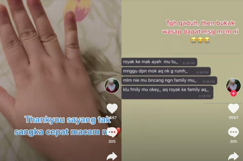 SETIAP pasangan bercinta pastinya ada cara tersendiri untuk menzahirkan perasaan mereka. Ada individu di luar sana gemar bermain dengan ayat puitis dan romantis, namun ada juga yang senang menggunakan bahasa bersahaja dengan pasangan mereka. Di aplikasi TikTok, tular video memaparkan perbualan WhatsApp seorang lelaki yang mengajak teman wanitanya untuk bertunang. ARTIKEL BERKAITAN: Bertahun menyepi selepas putus cinta, akhirnya ex-GF juga yang ‘sangkut’ jadi bini! Ramai nak cuba cara selamba lelaki ini ajak kahwin ARTIKEL BERKAITAN: Harungi banyak dugaan ketika bertunang, jurugambar Malaysia akhirnya nikah model Rusia - “Mencabar, macam-macam lelaki datang kat dia” Senang menggunakan kata ganti diri 'aku' dan 'mu' dengan pasangannya, mesej yang dihantar oleh Shahrul Amir Saamad, 26, kepada Athirah Rusnaidi, 21, dianggap kasar oleh segelintir netizen. "Royak (beritahu) ke mak ayah mu tu, minggu depan mak aku nak pergi rumah. Malam ni mu bincang dengan famili mu. Kalau famili mu OK, aku royak ke famili aku," tulis jejaka itu. View this post on Instagram A post shared by mStar (@mstaronlineofficial) Menurut Athirah yang senang disapa Tira itu, dia dan bakal tunangnya sudah terbiasa menggunakan ganti diri tersebut ketika berkomunikasi dan ia tidaklah kasar sebagaimana tanggapan sesetengah individu. "Sebelum saya dapat mesej tu, kami sebenarnya bergaduh dan saya block nombor dia. Kemudian saya unblock, terus dapat mesej dia nak datang merisik dan bertunang pada Sabtu ini. "Saya sekadar post video di TiKTok, tak sangka akan viral. Saya kongsi video untuk kenalan saya saja sebelum ini. "Ramai yang komen dan cakap mesej itu berbunyi agak kasar. Tapi kami memang membahasakan diri 'aku' dan 'mu' sejak dulu lagi. Kami dah terbiasa begitu," ujarnya kepada mStar. Tira gementar menjelang majlis pertunangan pada Sabtu ini. Menurut Tira lagi, dia juga tak sangka akan bertunang secepat ini memandangkan dia tiada perancangan ke arah itu dan sebolehnya mahu terus mendirikan rumah tangga. Namun kata Tira, perbincangan antara kedua belah pihak bersetuju dengan rancangan itu dan majlis kecil akan dilangsungkan pada Sabtu ini. "Memang tak jangka sebab saya cakap kat dia tak nak bertunang, nak kahwin terus. Tapi bila dia kata macam tu, famili kami pun setuju. "Tiada persiapan sangat sebab pandemik Covid-19 sedang melanda. Kami rancang untuk buat simple saja. Baju untuk bertunang pun saya recycle baju yang mana ada saja. TIRA "Baju untuk bertunang pun saya recycle baju yang mana ada saja. Tapi cincin kami dah beli," ujarnya yang menetap di Terengganu. Menurut pembantu kedai itu, dia terkejut menerima banyak komen netizen selepas video tersebut tular di TikTok. Selain memperkatakan gaya bahasa dalam mesej itu, ramai netizen turut menitipkan ucapan tahniah dan mendoakan yang terbaik buat pasangan itu. "Saya terharu dengan doa orang ramai sehingga tak sempat nak balas satu persatu. Saya juga terkejut apabila notification masuk tak berhenti. Tira dan bakal tunangnya berkenalan pada tahun lepas. "Perasaan saya agar berdebar menunggu majlis esok. Saya takut tersilap bagi tangan ketika nak sarungkan cincin," ujarnya berseloroh. Kata Tira lagi, mereka merancang untuk mendirikan rumah tangga menjelang hujung tahun ini, namun ia akan dibincangkan semula dalam majlis pertunangan itu nanti. Dedah Tira lagi, dia dan tunangnya berkenalan pada tahun lalu ketika sama-sama bekerja di sebuah pasar raya di Terengganu. Mengenai dirinya, Tira juga menjalankan perniagaan coklat dalam balang sejak tingkatan empat lagi. Kata Tira, dia juga merancang untuk menghasilkan jenama makanan sendiri suatu hari nanti dan berharap dapat bergelar sebagai usahawan berjaya. Dapatkan info dengan mudah dan pantas! Join grup Telegram mStar DI SINI TONTON VIDEO PILIHAN!