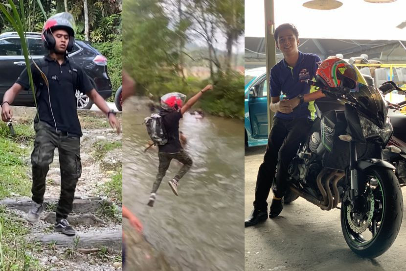 Dia yang memiliki dua motosikal berkuasa tinggi itu terus kekal mandi di sungai dengan lengkap berpakaian dan berkasut, tetapi bertindak menanggalkan helmet dan beg sandang.