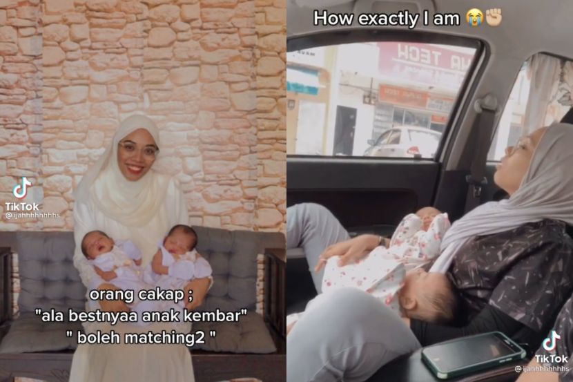 "ALA bestnya anak kembar," itulah kapsyen yang tertera di dalam sebuah video seorang ibu bersama bayi kembarnya. Namun, rakaman itu yang dimuat naik oleh suaminya memaparkan realiti sebenar bagaimana 'aksi' isterinya menjaga si kembar mereka yang mana pada masa itu dia berada di dalam kereta. Perkongsian tersebut setakat ini meraih hampir 70,000 tontonan di aplikasi TikTok. ARTIKEL BERKAITAN: Tak tahan berjauhan, gadis ini bawa kucing kesayangan tinggal di kolej... sanggup menyewa di luar selepas kantoi! - “Saya menangis dan merayu” ARTIKEL BERKAITAN: Tak kaya nak belikan tanaman kayangan, anak bawa ibu cabut pokok keladi dalam semak demi tambah koleksi - “Belum pernah jadi benda tak elok” Bercerita lebih lanjut kepada mStar, Izzah Faqihah Mohd Nazari, 20, berkata, video tersebut dirakam oleh suaminya, Muhammad Adirezza Firdaus Ishak, 22, ketika mereka sedang berada di luar untuk membeli makanan. Jelasnya lagi, suaminya memang suka merakam apa yang dilakukan bersama anak kembar mereka sebagai kenang-kenangan. View this post on Instagram A post shared by mStar (@mstaronlineofficial) "Sebenarnya video di TikTok tu hanya suka-suka, tak tahu pula video tu boleh jadi viral di media sosial. Waktu tu saya dan suami keluar pergi cari makan dan kemudian si kembar ni menangis sebab nak susu. "Jadi saya ambil mereka berdua dan susukan. Selepas kedua-duanya tertidur saya pun biarkanlah suami merakam keadaan saya sebab nak simpan sebagai kenangan. Izzah dan suaminya tidak menyangka mereka dikurniakan anak kembar. "Anak-anak saya ni sebenarnya bukan kembar seiras kerana ada dua kantung, tetapi waktu melahirkan tu jururawat cakap boleh jadi kembar seiras sebab wajah mereka hampir sama," katanya yang menetap di Masjid Tanah, Melaka.Menerusi video tersebut dapat dilihat Izzah Faqihah terpaksa meletakkan kakinya di atas 'dashboard' gara-gara terpaksa memangku anak kembarnya yang sedang tidur nyenyak. Lebih mesra disapa Izzah, dia berkata, pelbagai cabaran yang ditempuhi sepanjang menguruskan anak kembarnya iaitu Nur Adzra Izzatunnisa Muhammad Adirezza Firdaus dan Nur Aulia Izzatunnisa yang baru sahaja berusia dua bulan. Perkara yang paling sukar yang dihadapi oleh Izzah ialah ketika mahu menidurkan anak kembarnya kerana mereka akan bergilir-gilir terjaga sehingga jam 3 pagi. "Bermacam-macam kerenah mereka kita kena sabar bila menjaga anak kembar ni, lebih-lebih lagi waktu nak mandikan mereka. Masa tu kadang-kadang kena cepat sebab seorang mandi dan yang lagi seorang akan menangis. "Kalau nak menyusu pun mencabar juga sebab suami kerja dan saya seorang sahaja yang menjaga mereka. Jadi tangan kiri dan kanan pegang botol susu, kalau susu badan bila seorang tidur mesti yang lagi seorang bangun. "Paling susah dan struggle sikit waktu tidur merekalah, sebab anak-anak saya ni akan bergilir-gilir bangun. Bila adiknya dah tidur, si kakak pula bangun dan melarat sampai pukul 3 pagi tak lena sebab dua-dua menangis. GAMBAR CAPTION "Jadi cara nak bagi mudah ialah dengan tidurkan serentak, saya akan elakkan daripada mereka tidur lepas Asar sampai ke Maghrib sebab nanti malam susah nak tidur. "Tetapi waktu lepas Asar pun struggle juga, mula je dari pukul 6 petang mata mereka dah layu. Kalau diangkat dan kejutkan pun mereka masih lagi terlena," katanya yang merupakan seorang suri rumah dan suaminya pula bekerja sebagai operator kilang di Alor Gajah, Melaka. Menurut anak sulung daripada dua beradik ini, mereka mendirikan rumah tangga pada September tahun lalu dan dikurniakan cahaya mata pada 29 Jun 2021. Namun pada mulanya Izzah tidak menyangka bahawa dia sedang hamil anak kembar sehinggalah doktor mengesan sesuatu ketika menjalankan pemeriksaan pada kandungannya yang berusia lima bulan. "Saya berkahwin dengan suami pada September tahun lalu dan disahkan mengandung pada awal Disember 2020. Waktu mula-mula nak buka buku untuk pemeriksaan bulanan tu, doktor di klinik tak cakap apa-apa pun masa scan. "Tapi kali kedua datang untuk scan, tiba-tiba doktor tu bertanya 'kenapa kaki dengan tangan anak awak ni banyak, kejap saya cuba check betul-betul'. Lepas tu doktor cakap ada dua kepala dan ia bermakna kandungan saya ini kembar. Ragam anak-anak inilah yang kita akan rindu bila mereka dah besar nanti. IZZAH FAQIHAH MOHD NAZARI "Masa tu jugalah saya menangis sebab tak percaya saya yang kecil ni boleh mengandungkan anak kembar. Waktu itu suami bekerja, jadi saya tunggu sampai dia balik kerja berulah beritahu berita gembira tersebut. "Suami menangis dan sujud syukur bila saya bagitahu pasal anak kembar, dia tak sangka keturunan baka kembar itu turun kepada kami. "Keluarga pun terkejut jugalah, sebab belah keluarga kami berdua masing-masing ada keturunan kembar cuma tak tahu pula boleh turun pada saya dan suami," ujarnya yang berasal dari Melaka. Izzah berpesan kepada para wanita yang bakal menimang cahaya mata supaya banyakkan bersabar dan bersedia dari segi mental serta fizikal. Tambahnya lagi, anak-anak sememangnya mempunyai kerenah tersendiri dan perkara itulah yang kita akan rindui apabila mereka sudah dewasa. "Pesanan saya buat para wanita yang baru bergelar seorang ibu atau dah nak bersalin supaya mereka kuatkan semangat, mental dan fizikal. kedua-dua belah keluarga Izzah (kiri) dan suaminya mempunyai keturunan kembar. "Sebab perangai anak-anak ini akan berubah, kerenah masing-masing pun berbeza juga. Sekejap nak itulah, sekejap nak ini. "Apa yang kita boleh buat sebagai ibu bapa ialah bersabar dan lalui je sebab ni semua kenangan dan bukan senang nak dapat anak kembar. Ragam anak-anak inilah yang kita akan rindu bila mereka dah besar nanti," katanya. Dapatkan info dengan mudah dan pantas! Join grup Telegram mStar DI SINI TONTON VIDEO PILIHAN!