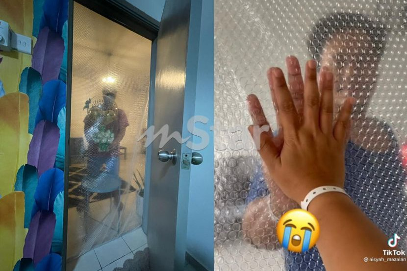 "Tapi tak boleh pegang, hanya mampu tengok di sebalik 'bubble wrap' yang dijadikan langsir penghadang pintu bilik saja," ujar wanita berusia 33 tahun ini.