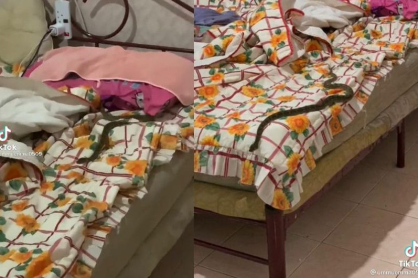 Ular sawa batik sebesar lengan bayi yang menceroboh masuk ke dalam bilik Ummu dan adiknya ketika mereka sedang tidur.