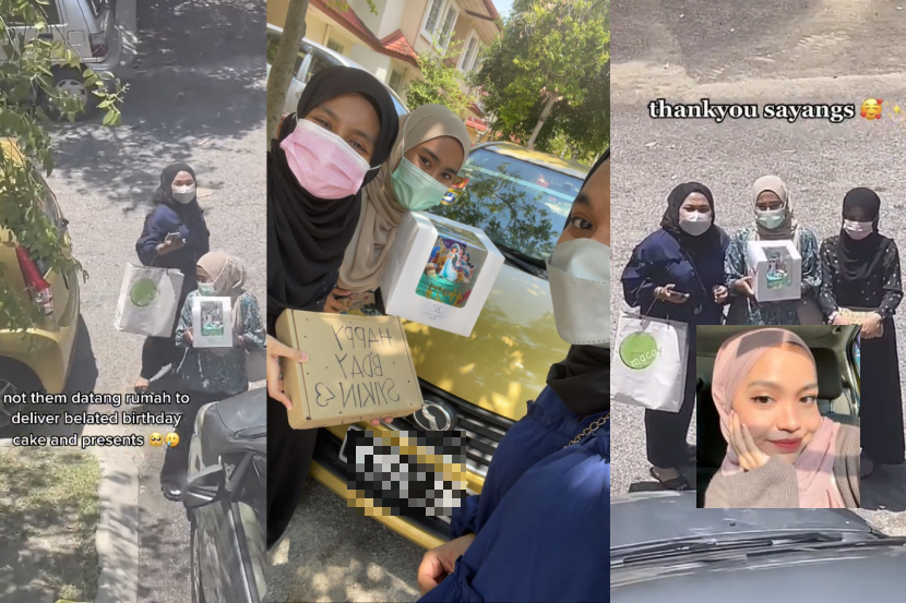 Video yang dimuat naik oleh gadis tersebut menunjukkan tiga sahabatnya membuat kejutan dengan menghantar sendiri hadiah dan kek hari jadi ke rumahnya walaupun dia sedang menjalani kuarantin.