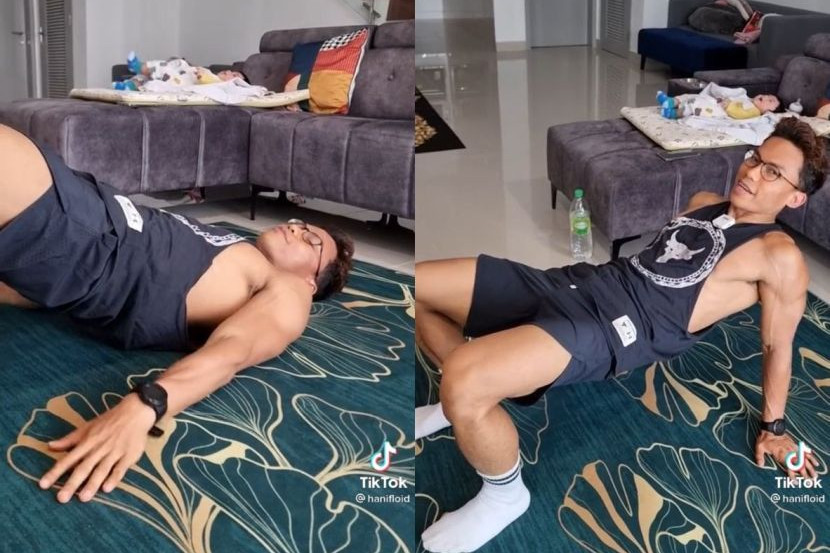 "Anak suka tengok saya bersenam. Dia akan gelak bila ada di situ. Biasanya sebelum solat Subuh, saya akan main gim di rumah.