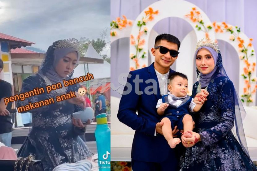 Malah apa yang melucukan, menerusi satu perkongsian video di aplikasi TikTok, kelihatan pengantin perempuan yang lengkap dalam persalinan busana songket sibuk membancuh makanan untuk bayinya.