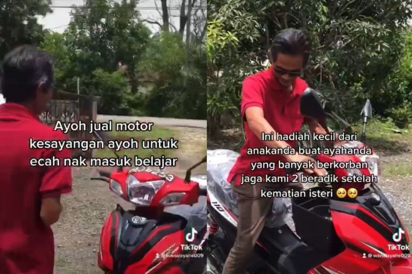"Motor baharu itu dihadiahkan sempena hari lahir ayah pada 14 September. Saya nak balas jasa. Dulu ketika saya sambung pengajian dalam bidang Bahasa Inggeris di sebuah kolej di Selangor, ayah jual motor Honda EX5 miliknya.