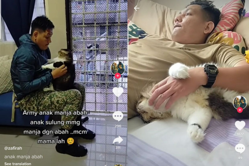 ANGGOTA tentera kebiasaannya cukup sinonim dengan karekter mereka yang garang serta tegas. Namun karekter 'tentera' yang seekor ini cukup berbeza. “Kalau abah dia nak pegi kerja kena cium, timang-timang dulu,” begitulah luahan hati pemilik seekor kucing kampung yang diberi nama Army. ARTIKEL BERKAITAN: Pengantin 'gabra' jam bunyi pukul 3! Buka kotak hadiah, ada juga minuman tenaga, stoking bayi - "Kalau niat nak prank, rancangan anda tak berjaya" ARTIKEL BERKAITAN: PKP punya hal, tiada apa yang mustahil! Tetamu terkejut, pengantin datang bawa anak kembar ketika majlis kahwin mereka Menurut Zafirah Zainoddin, 35, kehadiran Army menyebabkan dia kini jatuh di tangga kedua dalam hati suaminya, Faizul Rashid, 30, yang bertugas sebagai seorang anggota tentera. Zafirah yang sering berkongsi video gelagat mencuit hati Army dengan suaminya di akaun TikTok berkata, dia mempunyai empat ekor kucing yang kesemua namanya mempunyai kaitan dengan Angkatan Tentera Malaysia (ATM). View this post on Instagram A post shared by mStar (@mstaronlineofficial) “Asalnya akak ada empat ekor, Army, Navy, Airforce dan Marine, semua kucing ni akak jumpa, Army akak jumpa masa duduk dekat Kem 15 (Kem Senawang) sama dengan Navy tapi Navy umurnya tak panjang, mati sebab kena virus Feline infectious peritonitis. “Lepas tu akak ambil Airforce, usia tujuh bulan. Akak ambil dekat rumah makcik, last sekali Marine masa umur dia tiga bulan, akak jumpa masa balik dari ambil vaksin, dia tengah duduk bawah tayar kereta. “Antara semua, Army memang yang paling manja dengan abah dia,” katanya ketika dihubungi mStar. Zafirah dan Faizul bersama kucing-kucing kesayangan mereka. Menurut Zafirah, hubungan akrab Army dan suaminya membuatkan kucing kesayangan mereka itu sering mencari 'abahnya' setiap kali Faizul keluar bertugas. “Kalau abah dia duty dia cari, dia keluar masuk bilik... macam la akak ni sorok abah dia. “Malam-malam nak abah, tidur pun atas dada abah, lepas tu kuat mengadu. “Siang dia akan cari mama sebab nak suruh buang tahi dia, minta makan sebab memang akak la yang bersihkan tempat makan dan berak mereka,” selorohnya. Army (kiri) dan Navy. Zafirah yang masih belum dikurniakan cahaya mata berkata, kehadiran Army dan adik beradiknya yang lain merupakan antara kurniaan paling istimewa buat dia dan suami. “Dia (Army) adalah kurniaan yang istimewa buat akak dan suami walaupun dia hanya stray cat, ramai tak percaya masa akak jumpa dia dulu berkurap, kutu, kurus kering. “Kalau akak sedih ke, abah dia marah akak ke, Army akan datang dekat akak teman akak seharian, sama macam arwah Navy. “Airforce pun manja dengan akak, Marine kecil lagi jadi ikut dan dia je. Navy dulu pun manja dengan akak, masa dia meninggal berminggu-minggu akak dengan suami menangis,” kongsinya. Army bermanja bersama abahnya. Menurut Zafirah, suaminya yang sememangnya pencinta kucing mempunyai pelbagai rutin harian bersama anak-anak bulus mereka ini. “Suami akak memang utamakan kucing, akak ni jadi nombor dua, dia memang pencinta kucing. “Sebelum pergi kerja memang semua akan tunggu depan pintu, abah kena kutip seekor-seekor cium, timang-timang, kalau abah balik memang tunggu depan pintu, sampai abah masuk bilik pun mengekor je la Army tu, minta perhatian,” kongsinya. Army minta ditimang terlebih dahulu sebelum abahnya pergi bekerja. Zafirah berkata, perkongsian video-video Army di media sosialnya juga secara tidak langsung menarik perhatian orang ramai yang ingin berjumpa serta ada juga yang sanggup menawarkan harga tinggi untuk membeli Army. Namun jelas Zafirah, dia sama sekali tidak akan menjual kucing-kucingnya itu. “Berapa kali orang mesej akak nak jumpa Army sampai sanggup beli karpet-karpet yang akak jual semata-mata nak jumpa Army. “Ada yang tawarkan RM3,000 untuk beli Army tapi memang tak la, bagi berpuluh ribu pun akak tak akan jual,” jelasnya. Dapatkan info dengan mudah dan pantas! Join grup Telegram mStar DI SINI TONTON VIDEO PILIHAN!