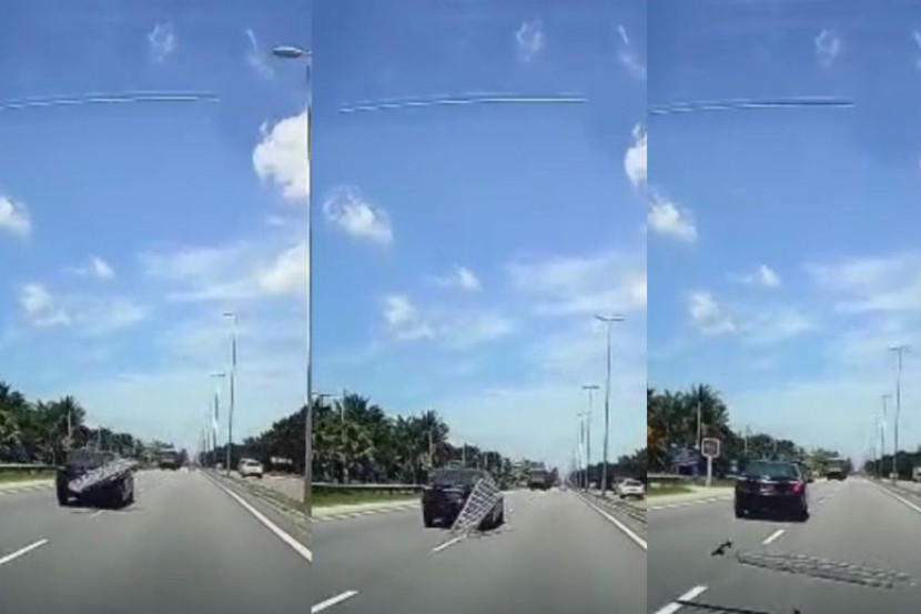 Menerusi satu perkongsian di TikTok, seorang lelaki memuat naik video detik-detik cemas apabila keretanya hampir terbabas gara-gara tangga dari sebuah kenderaan di hadapannya terjatuh secara tiba-tiba di atas jalan raya.