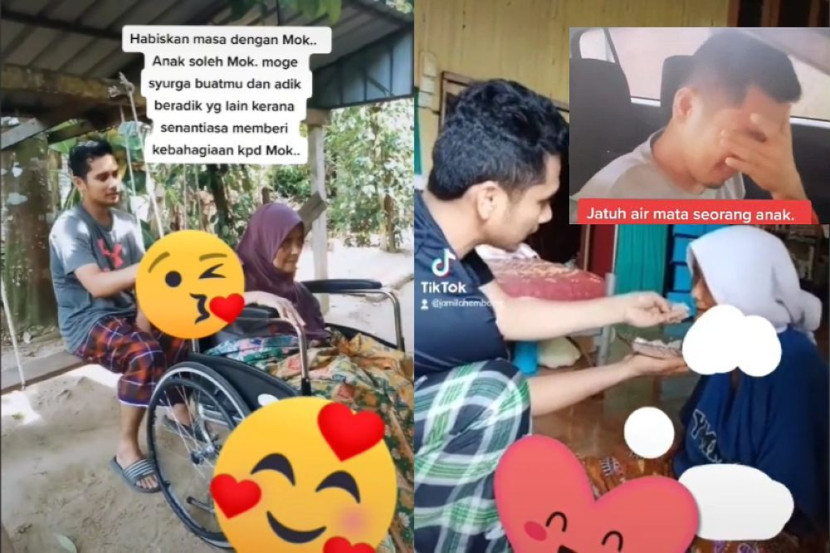 Video yang memperlihatkan ketekunan Alias Embong, 38, menjaga ibunya yang berkerusi roda itu, mendapat pujian daripada warga maya.