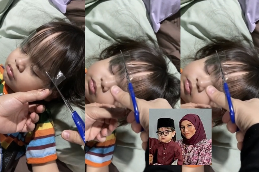 Mesra disapa Nora, ia merupakan peluang keemasannya mencuba teknik memotong rambut yang dilihat di TikTok selepas melihat anak bongsunya tertidur.